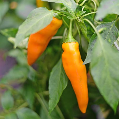 Information: The Tequila Sunrise Chili originates from the USA and reminds when maturing with its play of colors of the drink of the same name. The chilies grow partly upright, partly hanging and mature in a bright orange. They are thin-walled yet juicy and have a mild heat. They are suitable for fresh consumption as well as for drying or pickling.
