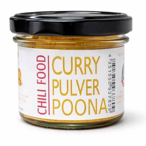 The curry blend Poona promises a spicy taste with a mild, sweetish heat. It is perfect for refining dishes or typical Indian curry dishes, but it is also suitable for marinating meat (chicken), e.g. with yoghurt and paprika powder. The flavours particularly come into their own when the curry blend is fried in some ghee (Indian butter).